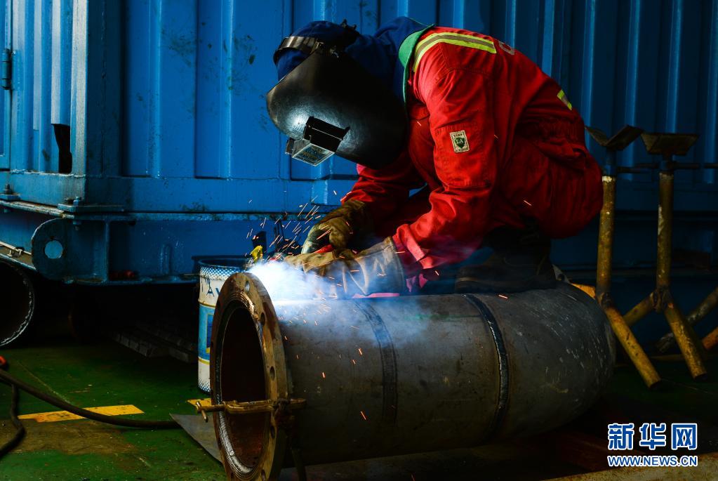 4月25日,工人在中國(guó)海油樂(lè)東15-1氣田作業(yè)。