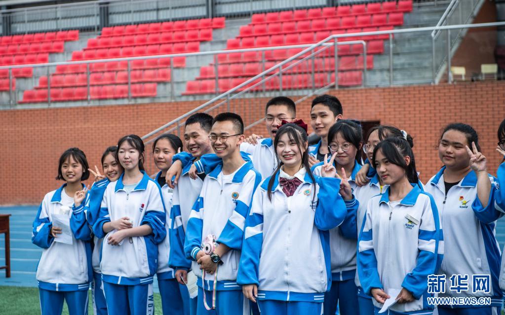 6月9日,烏當(dāng)中學(xué)高三學(xué)生在操場上拍照留念。