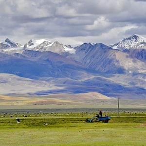 夏日里,西藏拉薩市當(dāng)雄縣境內(nèi)的天然草場(chǎng)綠草如茵,景色優(yōu)美。