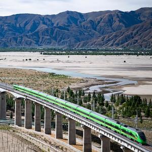 試運(yùn)行的復(fù)興號(hào)列車行駛在西藏山南市境內(nèi)(6月16日攝)。