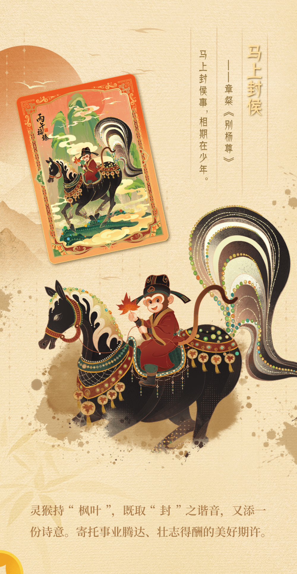 而这背后,是一代年轻人用自己的方式深入了解和传承传统文化。第三方数据机构报告显示,2025年总台春晚年轻用户参与度创新高,90后、00后占比66%,越来越多的年轻人成为主力观众。据报道,2026年,总台春晚首次向B站UP主敞开策划讨论的大门,邀请平均年龄不超过30岁的内容创作者参与共创。而“骐骥驰骋典藏卡”的创作团队,是曾推出《卡游三国》《长安三万里》《哪吒2》等卡牌产品的“Z世代”年轻画师们,他们的“创作动力源于不想让四大名著仅止于书本,不想让敦煌只在博物馆里,不想让昭陵六骏只刻于石上”。于是,今年这群年轻人把“春风得意马蹄疾”凝于卡面,把敦煌壁画白马带出莫高窟——就是为了让千年之美,能被握在手心。