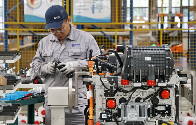 图为在北京大兴国际氢能示范区内,一家生产氢能燃料电池发动机企业的员工在装配设备。新华社记者 李欣 摄