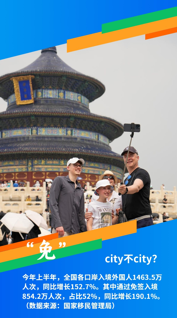 目前,中国72/144小时过境免签政策已经适用于全球54个国家。国家移民管理局数据显示,今年上半年,全国各口岸入境外国人1463.5万人次,同比增长152.7%。其中通过免签入境854.2万人次,占比52%,同比增长190.1%。
