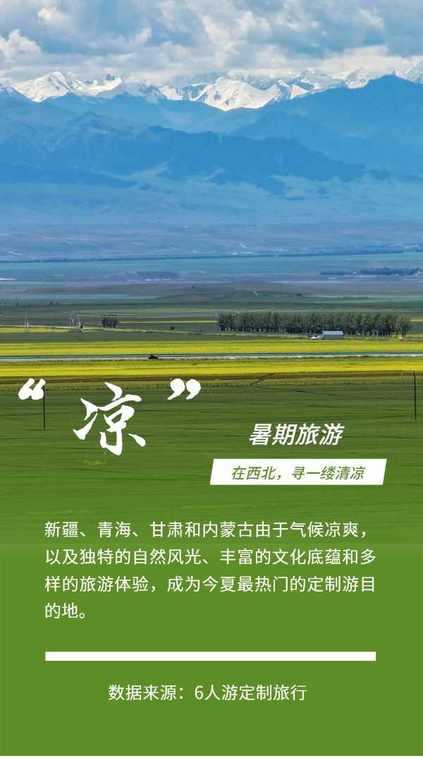 6人游定制旅行数据显示,新疆、青海、甘肃和内蒙古由于气候凉爽,以及独特的自然风光、丰富的文化底蕴和多样的旅游体验,成为今夏最热门的定制游目的地。《我的阿勒泰》的热播,带动了阿勒泰等地的旅游热潮,使新疆持续成为暑期排名第一的目的地。