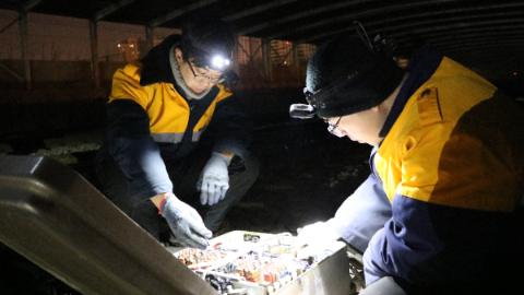 于力在查看道岔缺口視頻系統(tǒng)后,利用班前會對當(dāng)晚的作業(yè)內(nèi)容進(jìn)行重點提示。