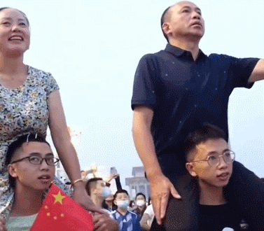 一个女孩扛着75岁父亲看升旗的一幕