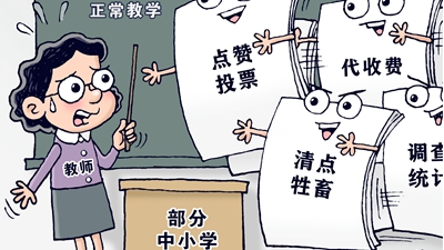 人數(shù)不夠教師來湊。主責主業(yè)成“副業(yè)”,工作負擔蹭蹭漲,讓教師苦不堪言。教師的時間都用在“副業(yè)”上了,哪還有時間教書育人?為教師減負,要減掉的正是那些教師不應承擔、與教育教學無關的事項,既要“治標”,也要“治本”。