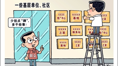 開展達標評比、創(chuàng)建示范活動,本是以標兵引領推動工作落實的有效之舉。但是一些部門卻將發(fā)牌視為“工作下沉”的象征,認為“掛牌即落實”,甚至將掛牌數(shù)量與考核排名掛鉤,大搞“繁瑣哲學”,動輒開發(fā)出上百項指標,以此下移壓力。部分社會組織甚至以“達標創(chuàng)建”之名創(chuàng)收牟利,造成負面影響。