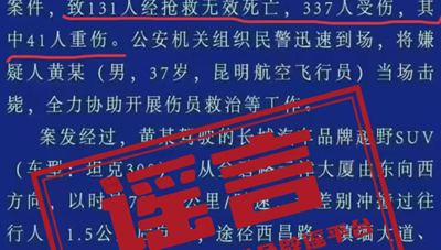 近日,有網(wǎng)民散布虛假的“警情通報”,造謠傳播云南昆明交通事故“致131人死亡,337人受傷”等不實信息,公安機關核查后,依法對造謠者進行了刑事拘留?!八{底白字”的“警情通報”是公安機關權威發(fā)布的重要渠道。不法分子竟敢冒用官方標識,將“2死9傷”惡意篡改成“131人死亡、337人受傷”,并編造聳人聽聞的細節(jié),真是膽大包天!