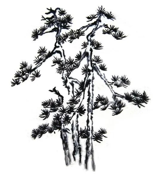 夾葉法:以雙鉤法為之,是以各種樹葉的生長(zhǎng)結(jié)構(gòu)和形態(tài)加以概括出來的表現(xiàn)程式。