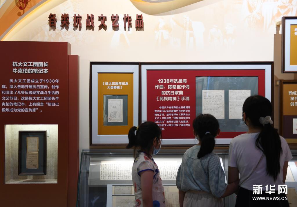 7月7日,觀眾在中國人民抗日戰(zhàn)爭紀念館參觀“中流砥柱——中國共產(chǎn)黨抗戰(zhàn)文物專題展”。新華社記者 張晨霖 攝