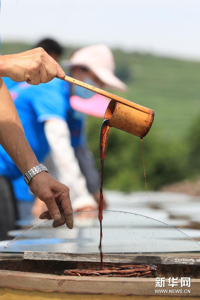 7月10日,工人在畢節(jié)市金沙縣禹謨鎮(zhèn)泡木灣醬醋基地查看醬醋發(fā)酵情況。貴州省畢節(jié)市金沙縣禹謨鎮(zhèn)是傳統(tǒng)醬醋生產(chǎn)大鎮(zhèn),年產(chǎn)陳醋2萬(wàn)余噸。在長(zhǎng)期的釀造實(shí)踐中,禹謨鎮(zhèn)利用當(dāng)?shù)鬲?dú)特的環(huán)境資源,用100多味中草藥與麥麩制曲,以當(dāng)?shù)貎?yōu)質(zhì)大米、玉米為原料,經(jīng)過(guò)70多道工序,經(jīng)一年以上露天發(fā)酵成獨(dú)特的“醬香醋”。該釀醋技藝2019年被列入貴州省級(jí)非物質(zhì)文化遺產(chǎn)名錄。今年以來(lái),禹謨鎮(zhèn)將醬醋產(chǎn)業(yè)與旅游業(yè)結(jié)合起來(lái)一體化推進(jìn),把泡木灣醬醋基地打造成國(guó)家3A級(jí)景區(qū),有效拓寬當(dāng)?shù)厝罕娫鍪罩赂煌緩?,走出了一條工旅融合的鄉(xiāng)村振興新路。新華社發(fā)(韓賢普攝)