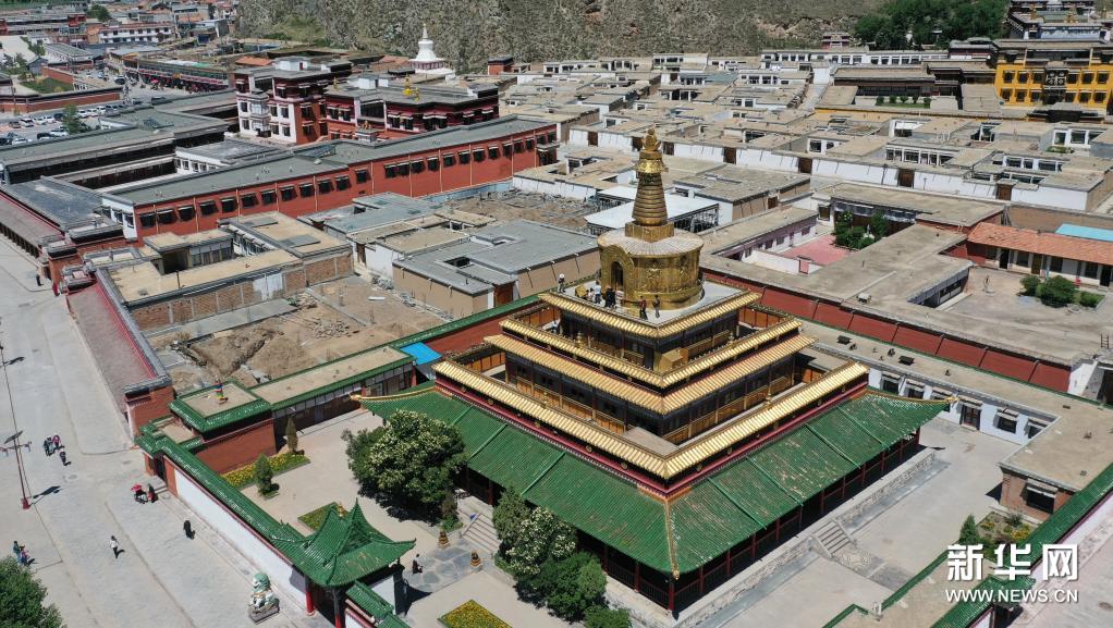 這是7月12日拍攝的拉卜楞寺貢唐寶塔(無人機照片)。新華社記者 陳斌 攝