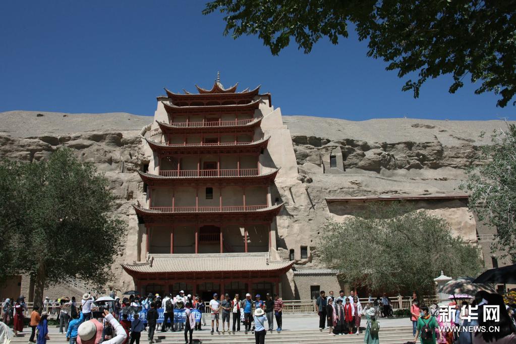 游客在敦煌莫高窟游覽(7月6日攝)。新華社記者 劉詩平 攝