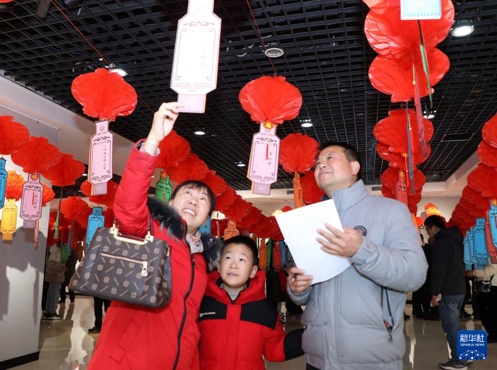 2月22日,在甘肃省兰州市图书馆,市民在猜灯谜。