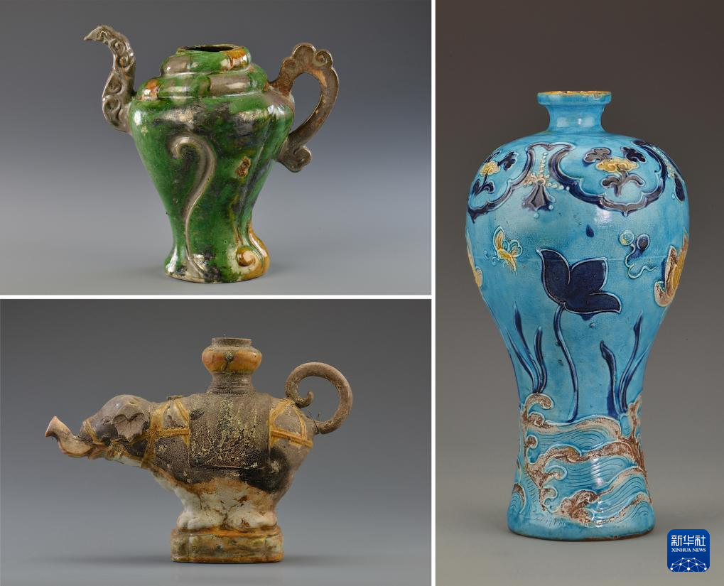 南海西北陆坡一号沉船遗址出水的瓷器(拼版照片)。