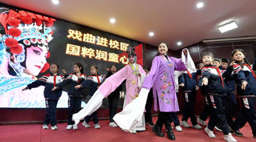 3月26日,在山东省滨州市沾化区大高镇枣木雕刻工坊内,木雕艺人崔树曾给学生们展示如何手工雕刻艺术品。
