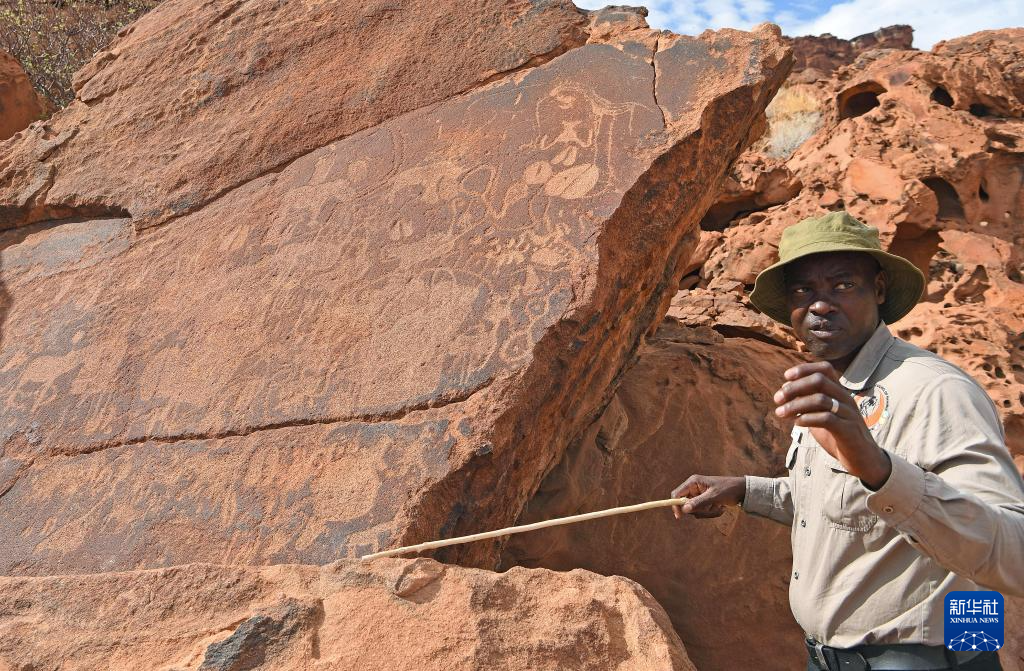 这是3月26日在纳米比亚库内内省拍摄的颓废方丹岩画。