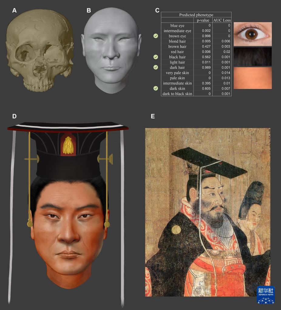 复旦大学科技考古研究院文少卿团队用专门适用于古DNA的捕获探针,从北周武帝肢骨样本上获取了约100万个可用的基因位点,还原北周武帝头发、皮肤、瞳孔等关键特征。经过6年的反复尝试,终于“描绘”出宇文邕头像。