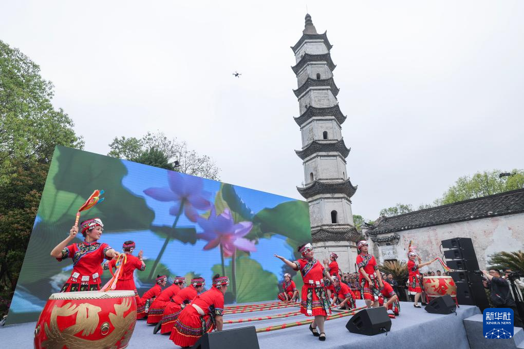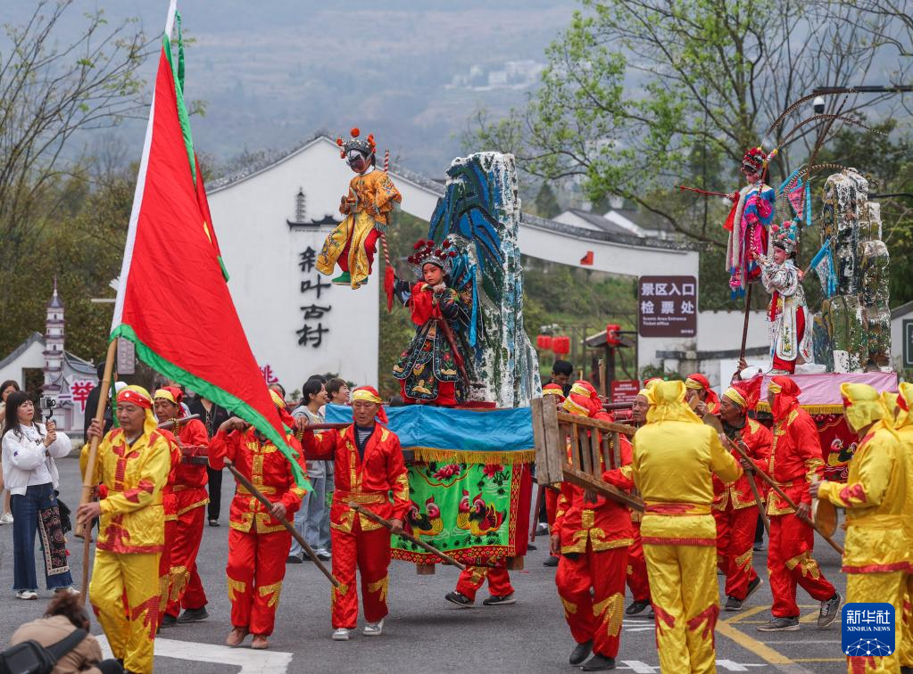 当日,浙江省建德市大慈岩镇新叶村举行“新叶三月三”特色民俗非遗展演。建德、兰溪、龙游三地的“李村抬阁”“新叶昆曲”“龙游硬头狮子”“畲族竹竿舞”等十余项非遗传统节目在新叶古村轮番上演。