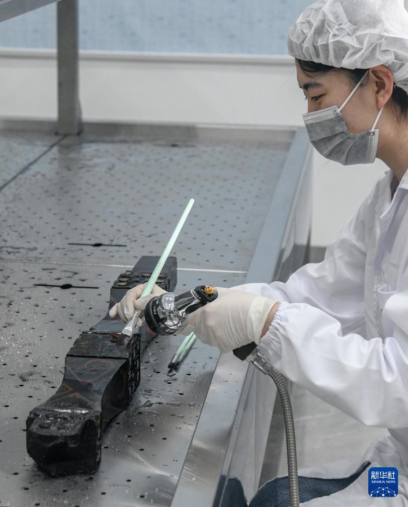 工作人员在对安徽淮南武王墩主墓出土的漆木器进行保护。