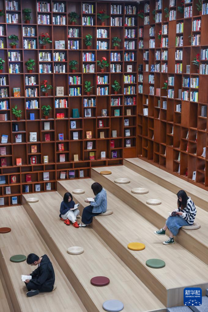 4月16日,读者在嘉兴市南湖区图书馆阅读、学习。