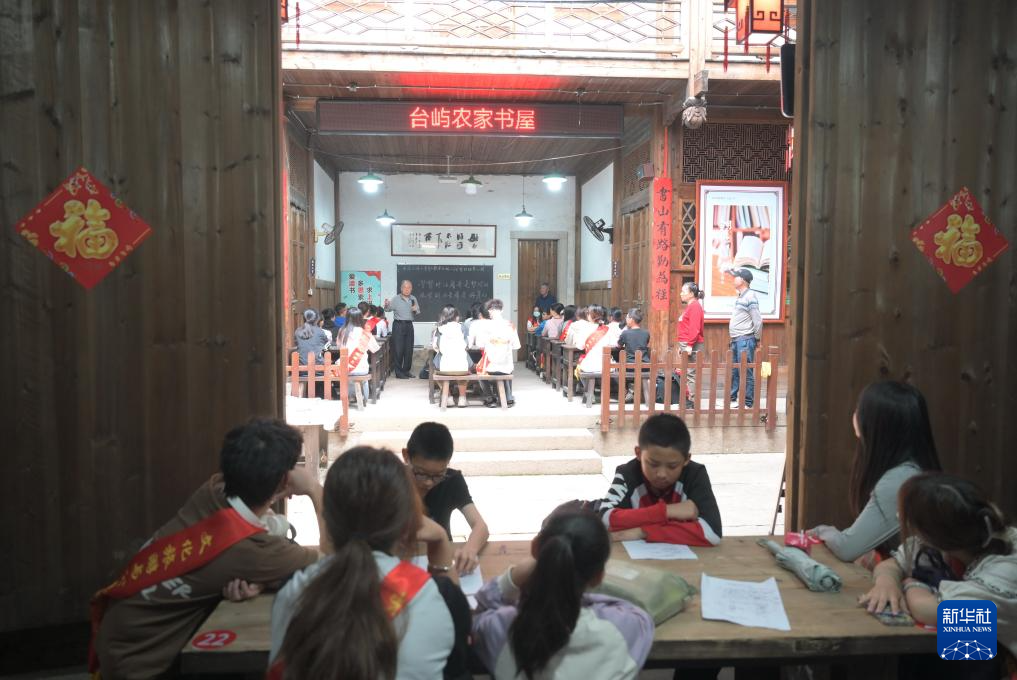 4月20日,书屋管理者陈松年(右一)在“台屿农家书屋”与小学生分享“知识就是力量”的讲座。