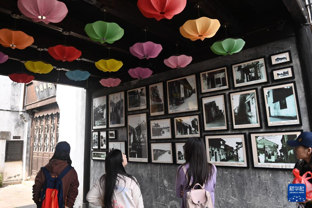 拼版照片:左图为1979年的嘉兴市月河历史街区蒲鞋弄(资料照片,庞艺影摄);右图为4月26日,游客在嘉兴市月河历史街区蒲鞋弄游玩(新华社记者 江汉 摄)。