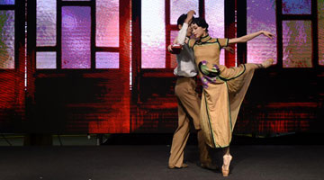 5月8日,演员吴虎生和戚冰雪(右)在表演芭蕾舞剧《花样年华》选段。新华社记者 贺灿铃 摄