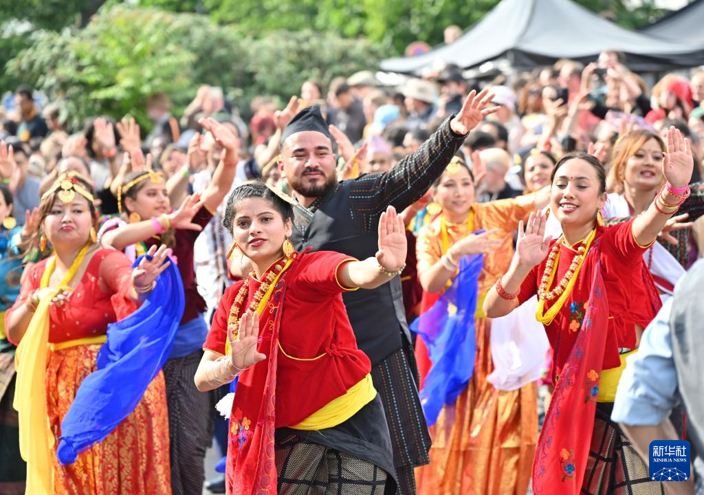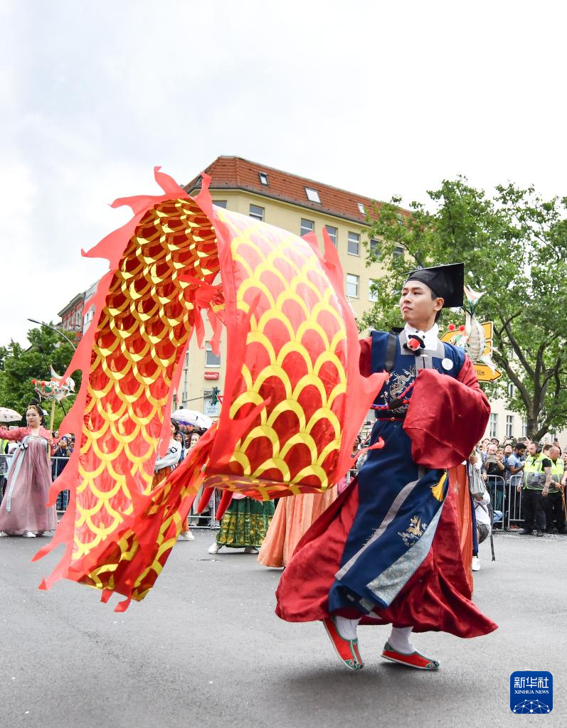 5月19日,来自中国的演员参加柏林文化狂欢节大游行。