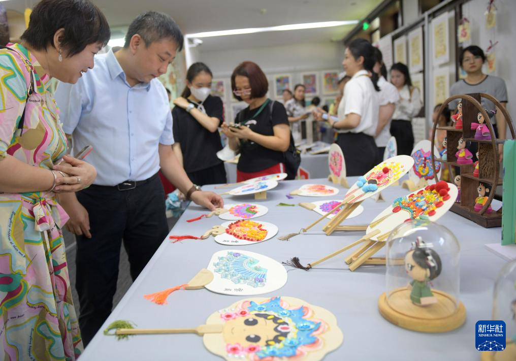 5月25日,市民在广州市文化馆参观乐贤坊小学学生的立体纸艺作品。