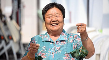 6月10日,市民在海口市文华菜市场举办的菜市场非遗生活周活动上选购艾叶。