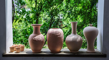 6月10日在海口市文华菜市场举办的菜市场非遗生活周活动上拍摄的椰雕工艺品。