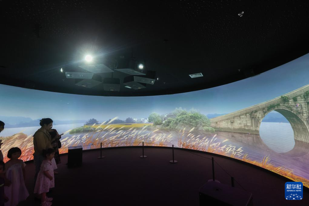 6月12日,观众在位于嘉兴市艺术文化中心的秀洲非遗馆内观看非遗环幕电影。