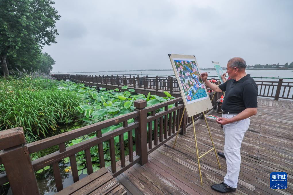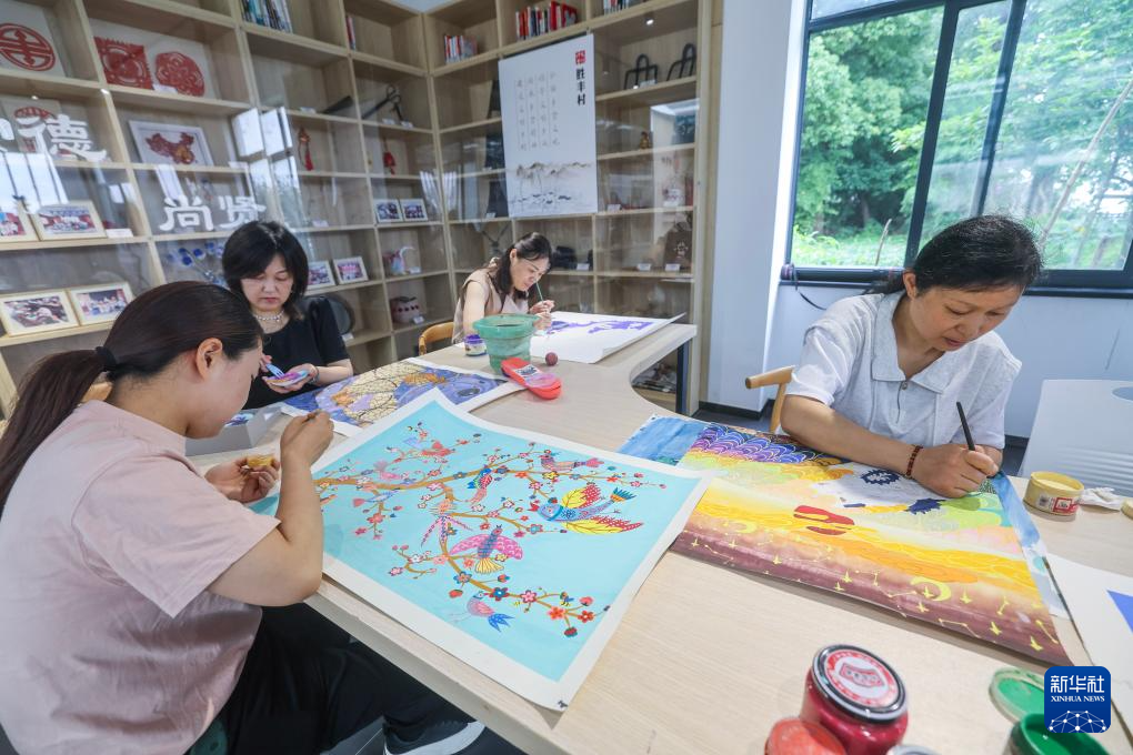6月12日,在秀洲区油车港镇胜丰村的农民画创作中心,当地农民画画家在创作。
