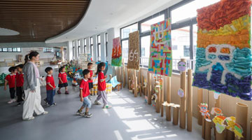 6月16日,北京舞蹈学院学生在资华筠舞蹈艺术馆参观。