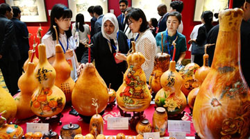 6月25日,观众在观看错金银鸟篆文铜壶。