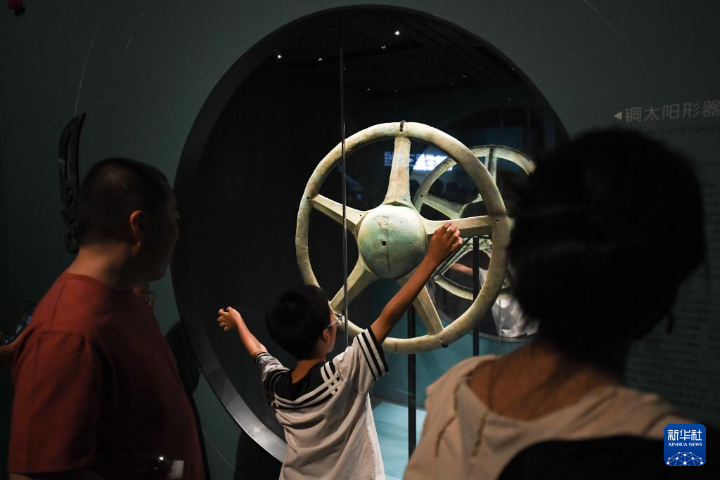 6月27日,观众在观看展品铜太阳形器。