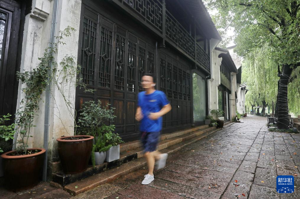 6月29日,游客在嘉兴芦席汇历史街区游玩。