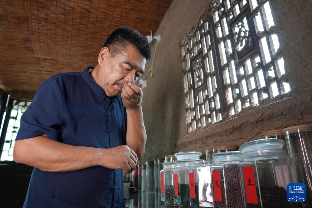 张书芳在查看制香原材料柏子仁的品质(7月3日摄)。