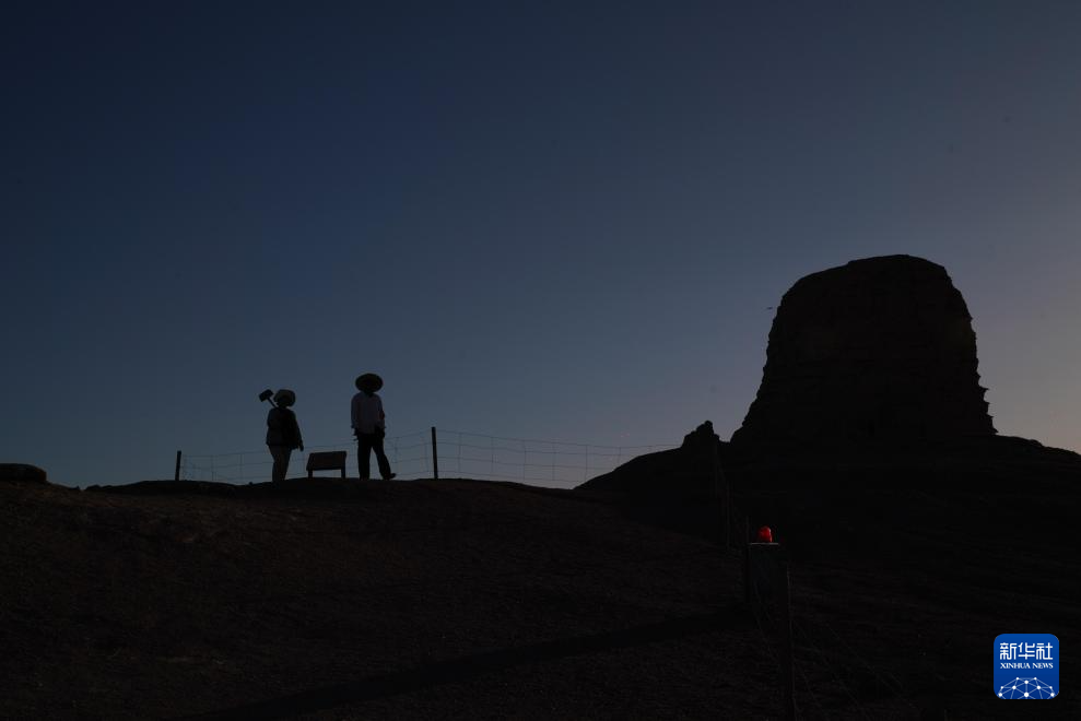 玉门关外,大漠戈壁,汉长城遗址巍然屹立,诉说着历史上的边塞风云和丝路沧桑。