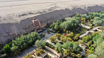 改造升级后松木场农贸市场装饰墙上的鱼篓等物件(9月23日摄)。