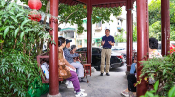 改造升级后松木场农贸市场顶部装饰的油纸伞(9月23日摄)。