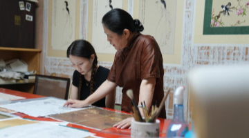 这是在西藏日喀则市定结县拍摄的“萨尔谐钦”传承人云旦卓玛(左)与她的学生(9月25日摄)。