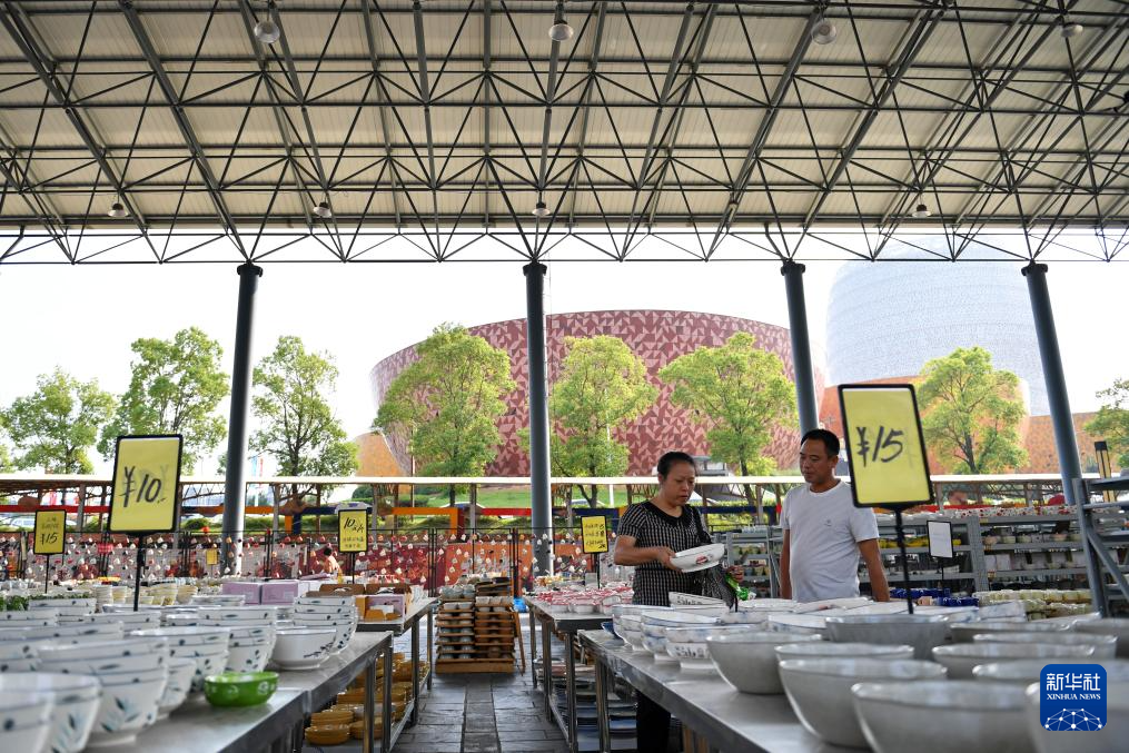 9月26日,游客在醴陵市一处“低价捡瓷区”挑选瓷器后离开。