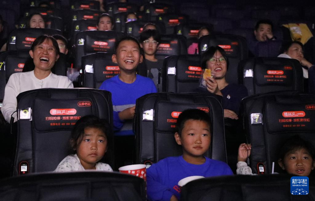 10月7日,观众在山东省博兴县一家影城观看影片。