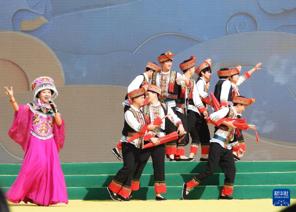 10月28日,少数民族演员在展演现场表演节目。
