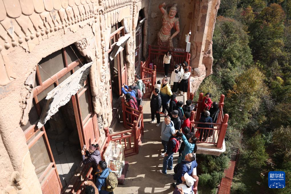 这是11月2日拍摄的麦积山石窟(无人机照片)。