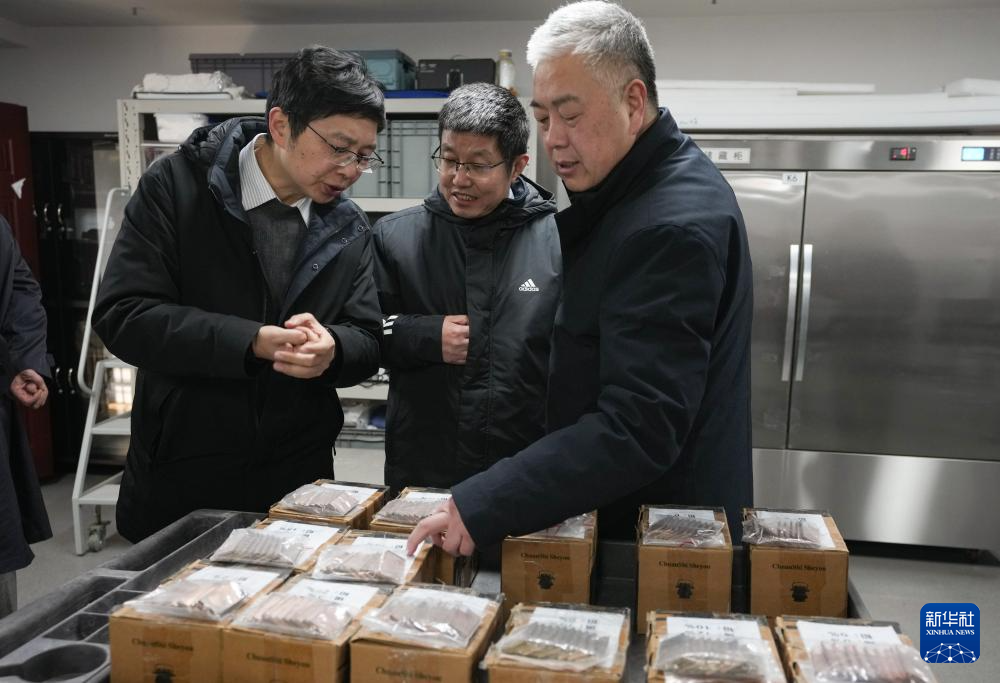12月16日,在三星堆研究院,考古专家在查看青铜器金属含量样本。