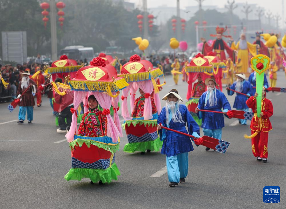 1月22日在绵竹年画节开幕式上拍摄的巡游队伍。